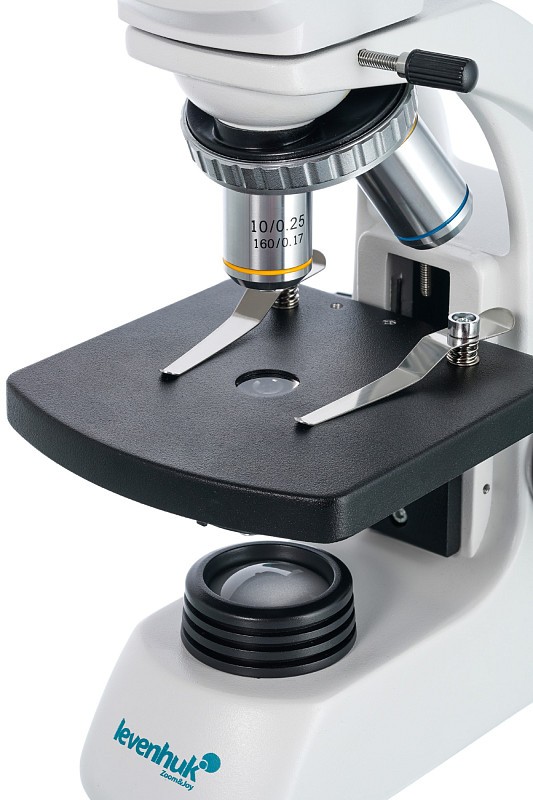 Lo schema ottico comprende un oculare a campo largo e obiettivi acromatici con vari ingrandimenti. L’ingrandimento complessivo di questo sistema ottico ne permette l’uso con strutture di dimensioni medio grandi. Per una maggiore comodità, la testata monoculare è inclinata a 45°e ruota di 360°. Queste caratteristiche rendono il microscopio ottimale sia per il lavoro individuale che in gruppo.