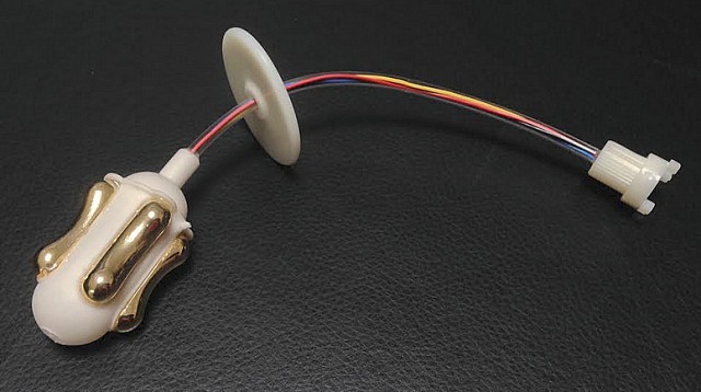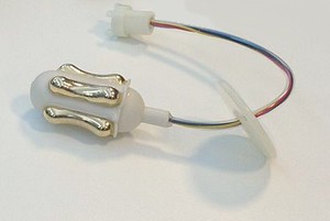 Un palloncino morbido, di forma cilindrica arrotondata, sostiene le due coppie di elettrodi dorati con profilo “a sella”.