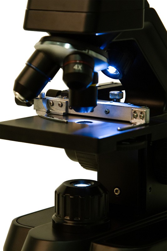 The mechanical crosstable and the coarse and fine focus makes adjusting and screening the sample easy. The 40x objective is sufficient to view small microorganisms and even bacteria, e.g. from a hay infusion. With the additional reflected light you can also view (small) non transparent samples, like plant matter, sand, or insects. The reflected light should be used with the 4x lens. A sample preparation is usually not necessary in this viewing mode, which makes it especially easy for children to get their first glimpse of the micro world.