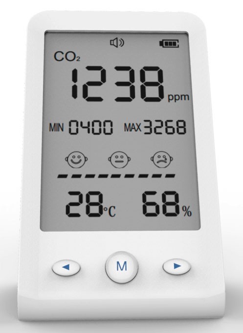 Questo dispositivo ha un rilevatore di CO2 integrato che misura rapidamente ogni variazione nociva. Lo strumento non si limita a mostrare sullo schermo il dato attualmente misurato, ma emette anche un avviso in caso di valori critici. Quando si è impegnati in un progetto di lavoro o distratti dal proprio passatempo preferito, è facile non prestare attenzione ai valori misurati: sarà il dispositivo a ricordarvi quando è il momento di arieggiare la stanza. Inoltre, mantiene in memoria il valore massimo e minimo e li mostra sullo schermo con una semplice grafica che indica lo stato del microclima nella stanza.