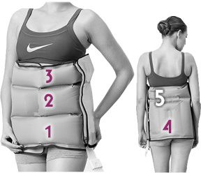 E’ possibile utilizzare i 2 gambali, la sola fascia addominali glutei oppure i 2 gambali e la fascia addominali/glutei contemporaneamente. Il bracciale si utilizza da solo.