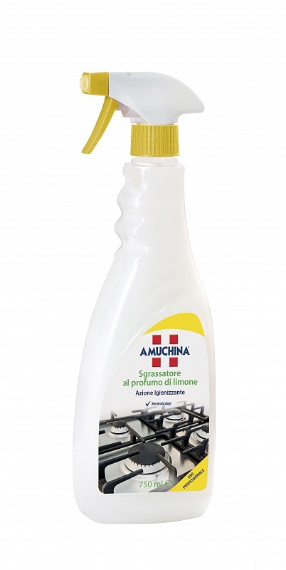Amuchina Sanitizing Degreaser zagotavlja globinsko čiščenje v enem samem prehodu in na površinah pusti svež in prijeten vonj po limoni.