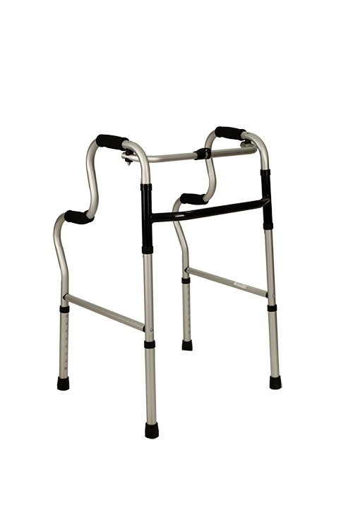 Walker s cevasto strukturo iz anodiziranega aluminija s premerom cm. 2.54, z dvojnimi ročaji, ki olajšajo prehod iz sedečega v stoječi položaj.