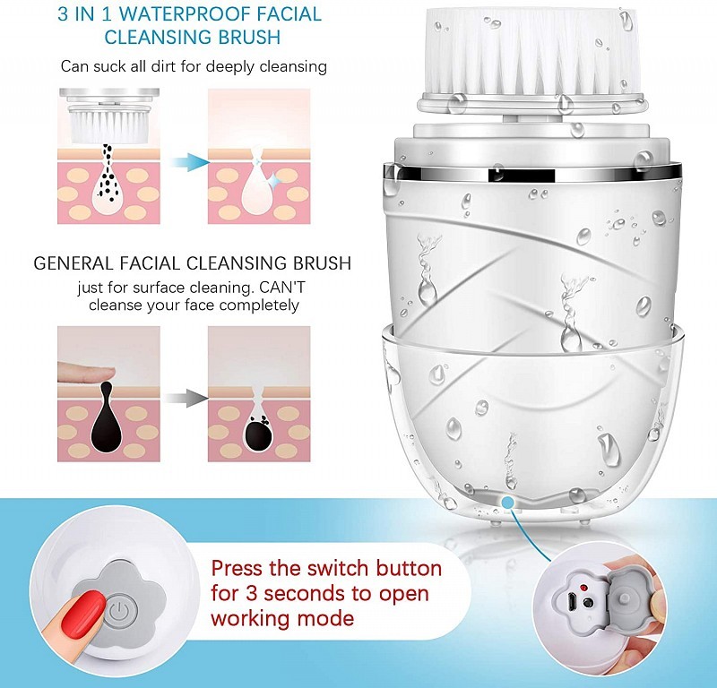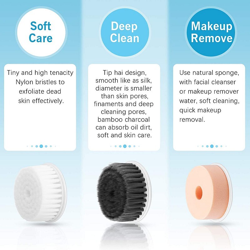 2-rýchlostný dizajn (mäkký a rýchly). Podržaním na 3 sekundy otvoríte túto kefku na čistenie tváre. je najlepšou voľbou a skúsenosťou v starostlivosti o pleť. 3 hlavy plnia rôzne funkcie, mäkká a citlivá hlava na jemné čistenie, exfoliačná hlava na každodenné hĺbkové čistenie, hubková hĺbková čistiaca hlava na odstránenie make-upu.
