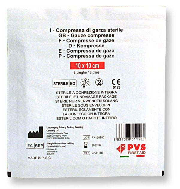 4-slojne sterilne gaze velikosti 10 x 10 cm so izdelane iz čistega belega bombaža brez uporabe optičnih belil. Ponujajo visoko hidrofilnost za odlično vpojnost, zaradi česar so mehke in odporne na vlečenje. Izdelek je radiolucenteren, zato neviden za rentgenske žarke.