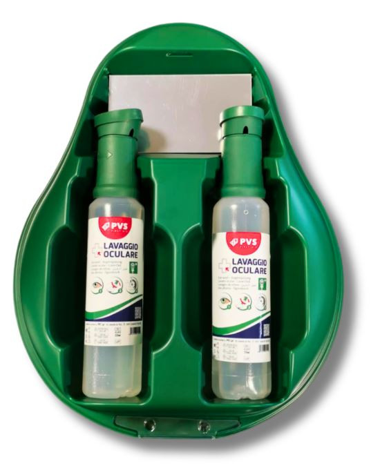 MINI DROP je kompaktna raztopina za izpiranje oči, idealna za okolja s tveganjem prahu ali manjših kemičnih brizgov. Komplet vsebuje dve 250 ml steklenički sterilne fiziološke raztopine za enkratno uporabo, skupaj s pokrovčkom za oči za takojšnjo uporabo. Postaja je zasnovana za preprosto in varno stensko montažo, zahvaljujoč termoformiranemu stojalu s pokrovčkom za prah in vgrajenim ogledalom za lažji vizualni pregled med uporabo.